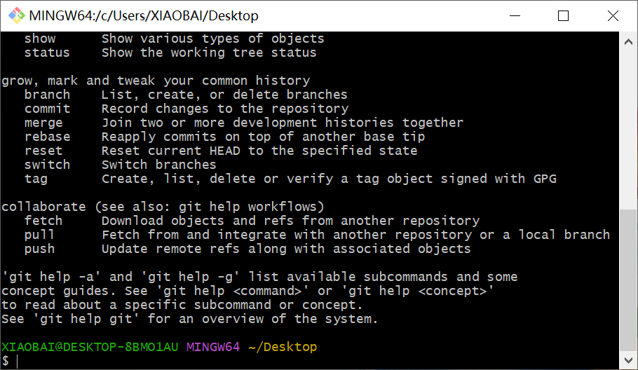 安装完成后打开 Git bash,输入 git